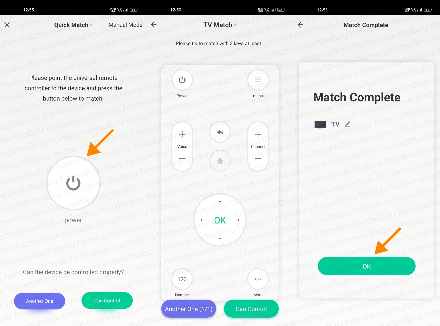 - Если устройство реагирует на ик-код жмем на "Can Control", если нет то "Another One" до тех пор пока не подберете рабочий вариант
